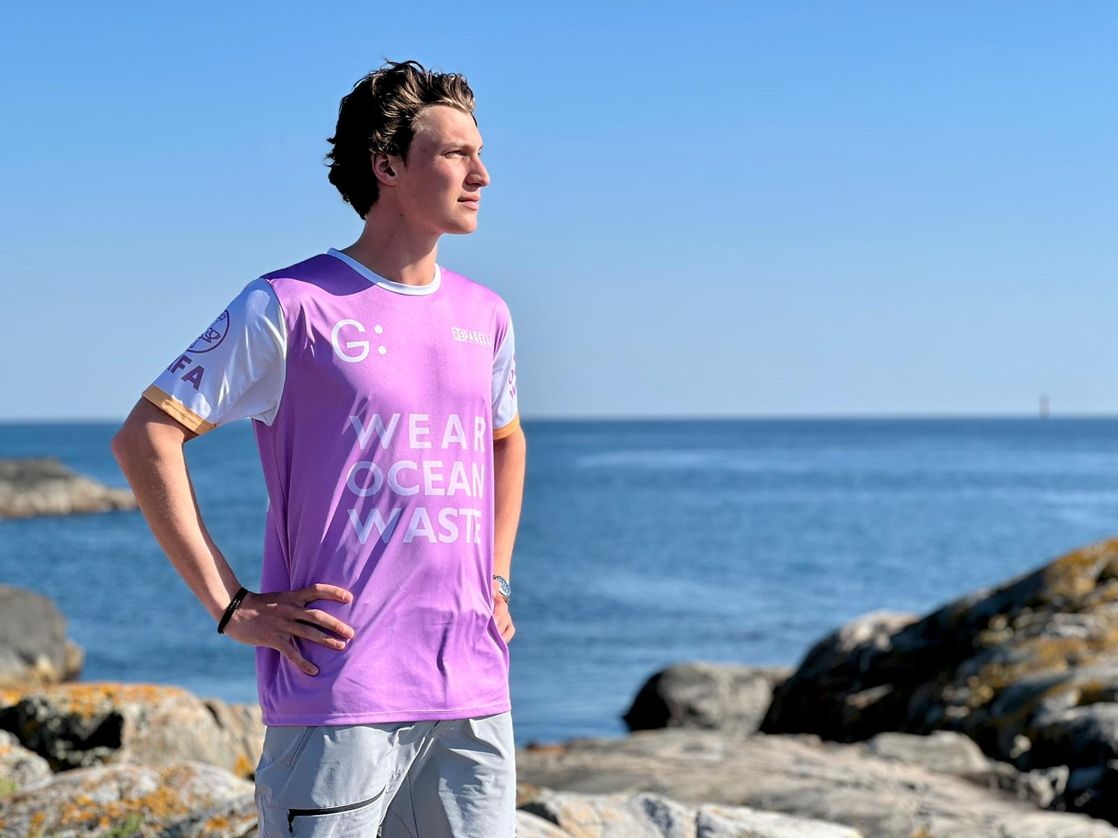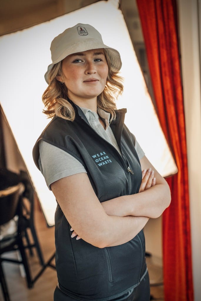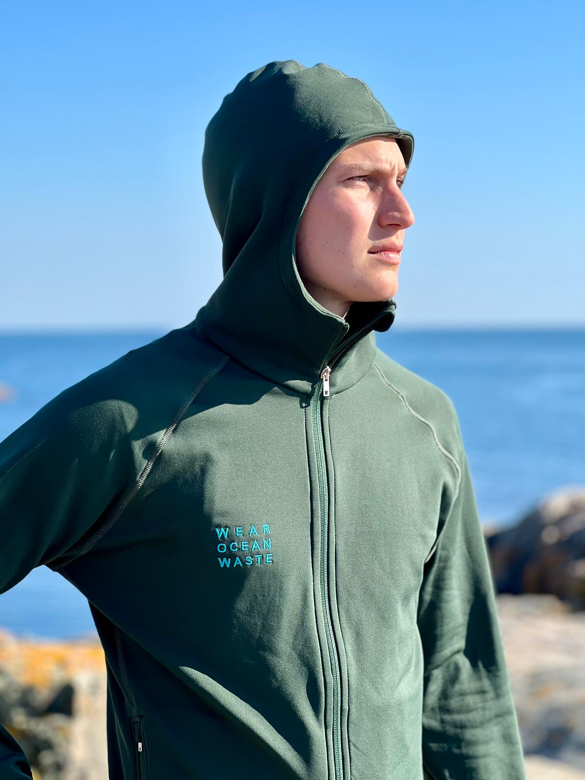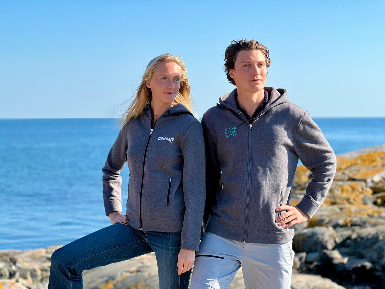 Each garment was developed using OceanWaste and AutoWaste yarns — recycled PET from ocean waste and recycled polyamide from end-of-life tyres — and produced on demand in Portugal within 70 km from yarn to garment.