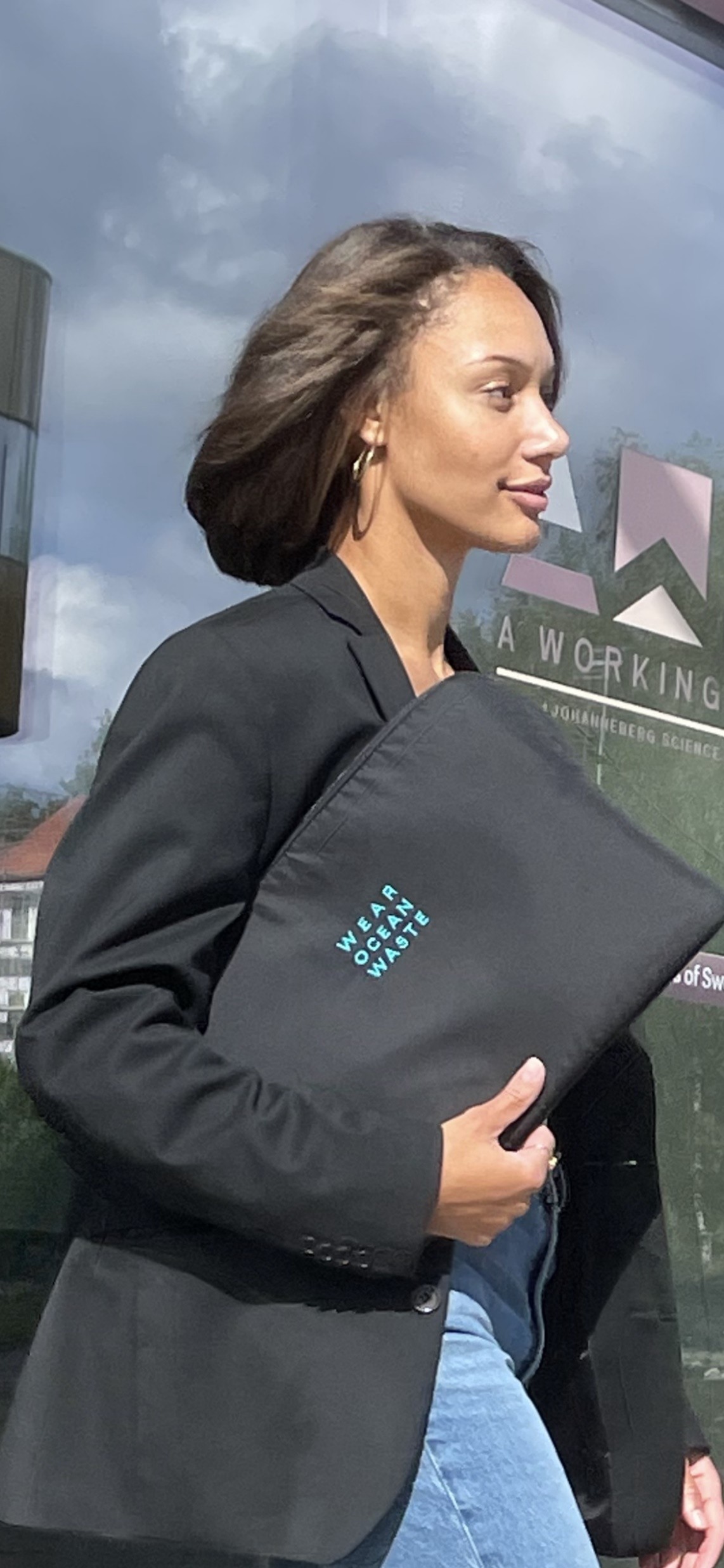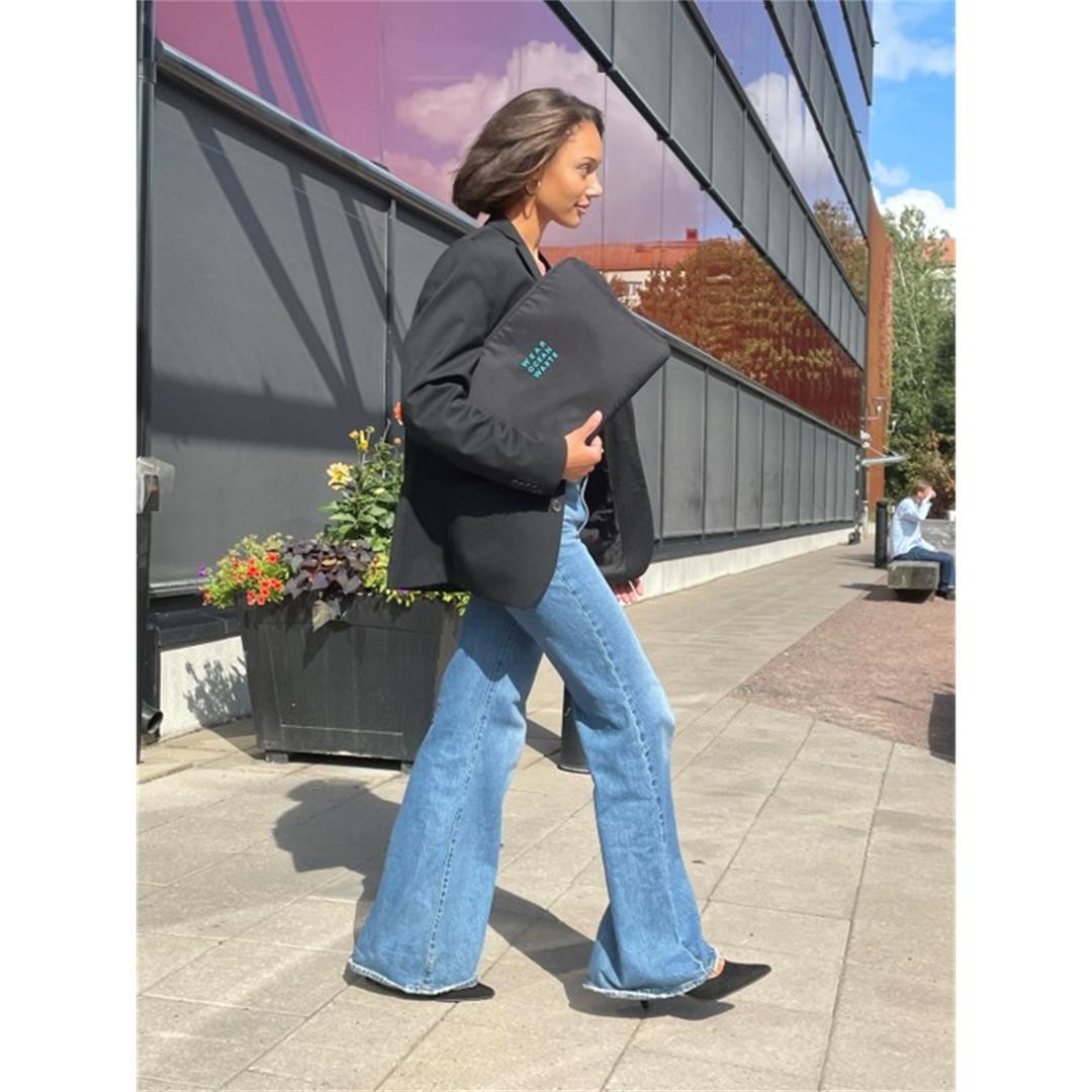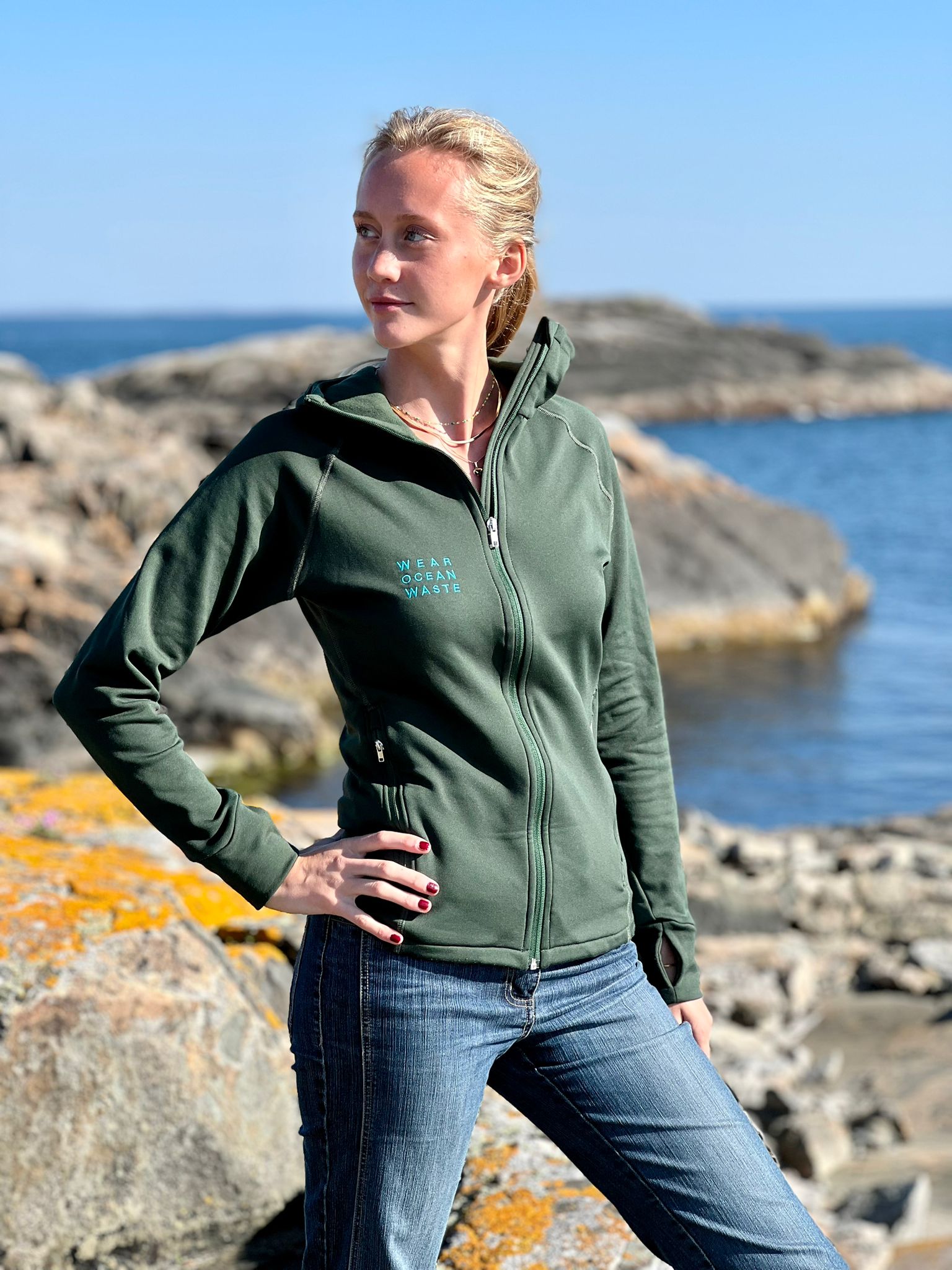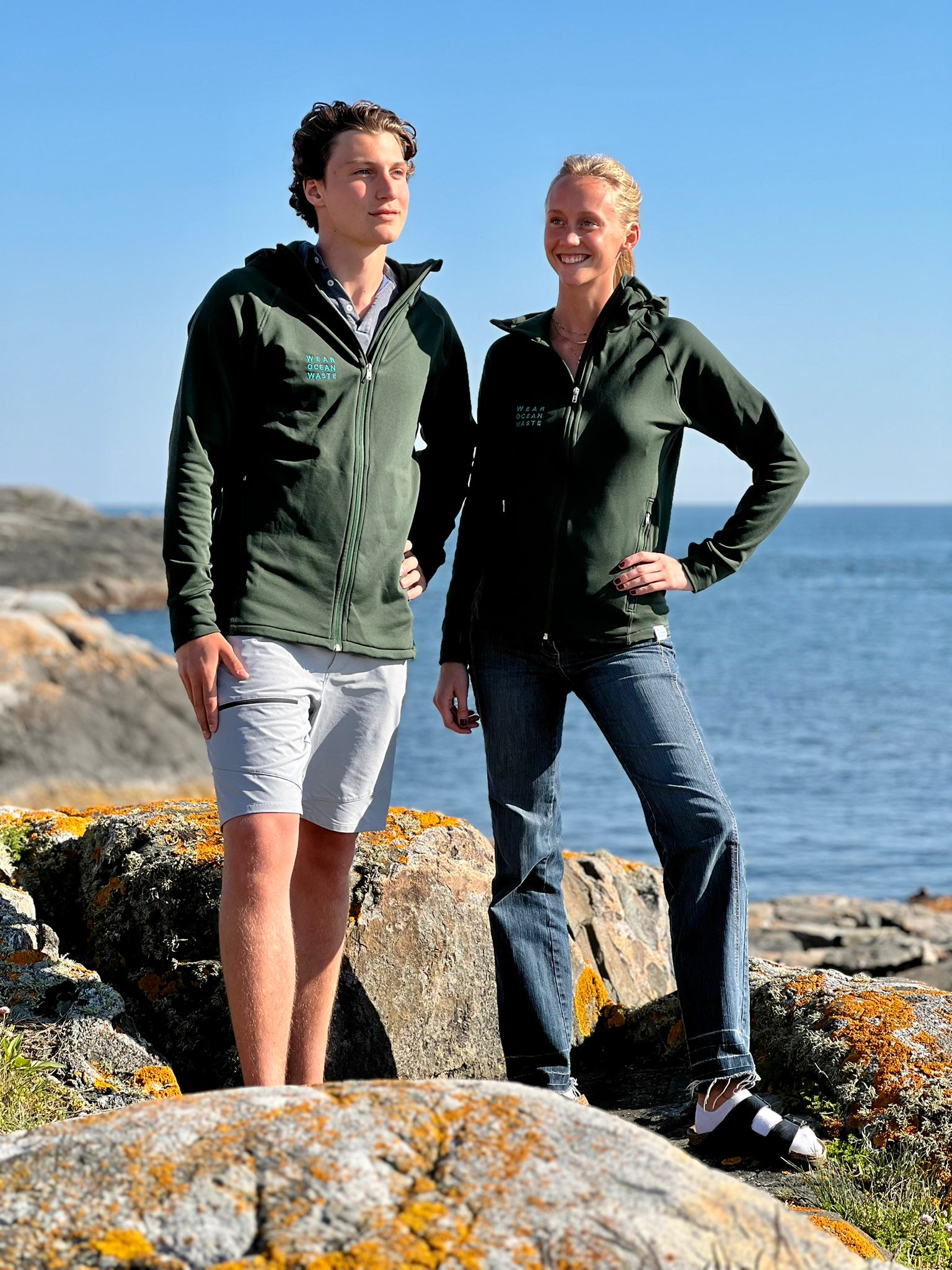 Each garment was developed using OceanWaste and AutoWaste yarns — recycled PET from ocean waste and recycled polyamide from end-of-life tyres — and produced on demand in Portugal within 70 km from yarn to garment.